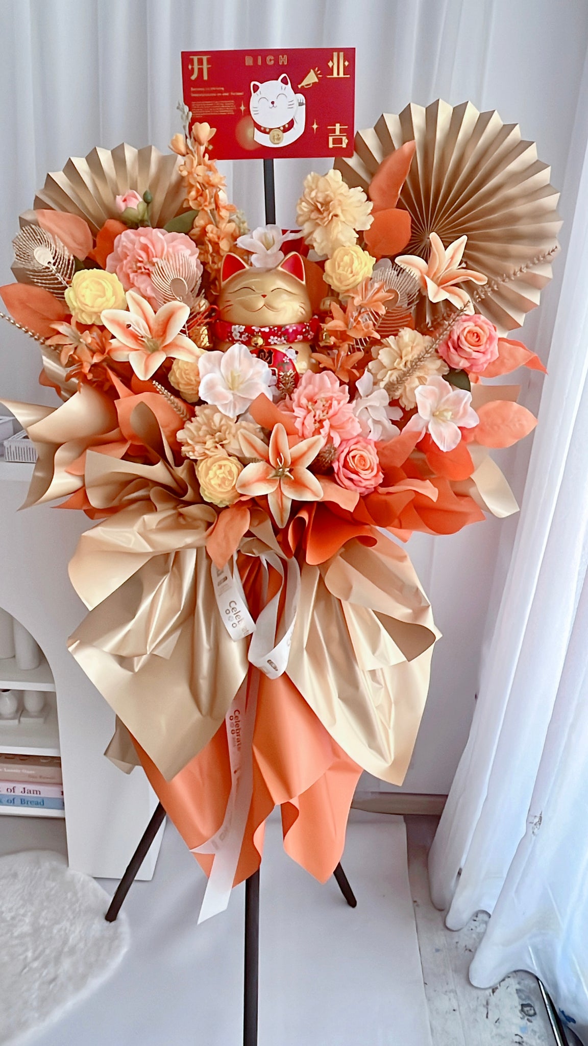 乘风破浪,一帆风顺 (仿真花Artificial flowers开业陶瓷招财猫花篮)