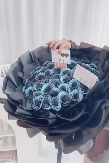 52 Soap Black Spray Color Ice Blue Rose 52朵香皂黑玫瑰喷碎冰蓝花束(香皂花)